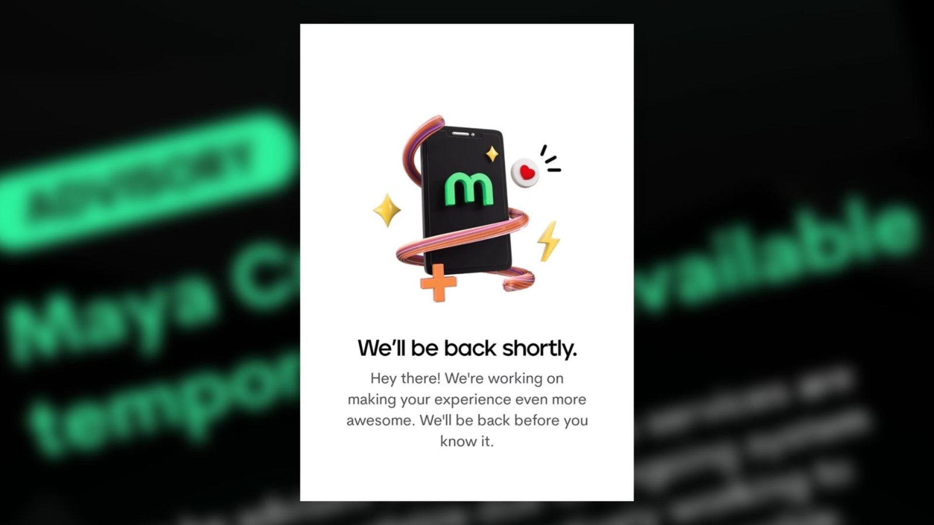 Maya has not issued a detailed explanation for the downtime, stating only that it was “working on making your experience even more awesome.”